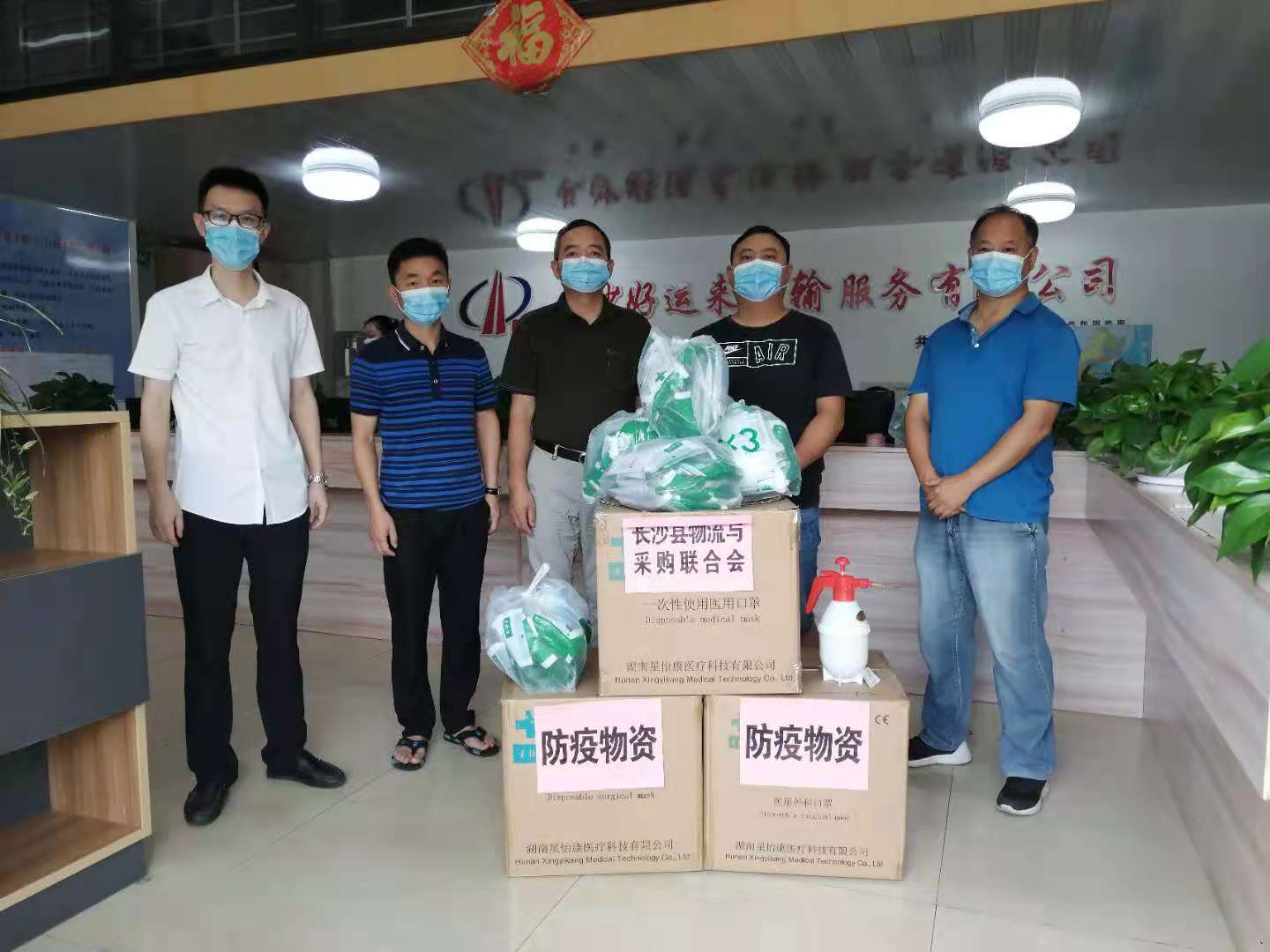 长沙县物流与采购联合会秘书长张正明,执行秘书长罗创,副会长陈敏,理事洪波,积极筹集防疫物资,分发给会员单位。