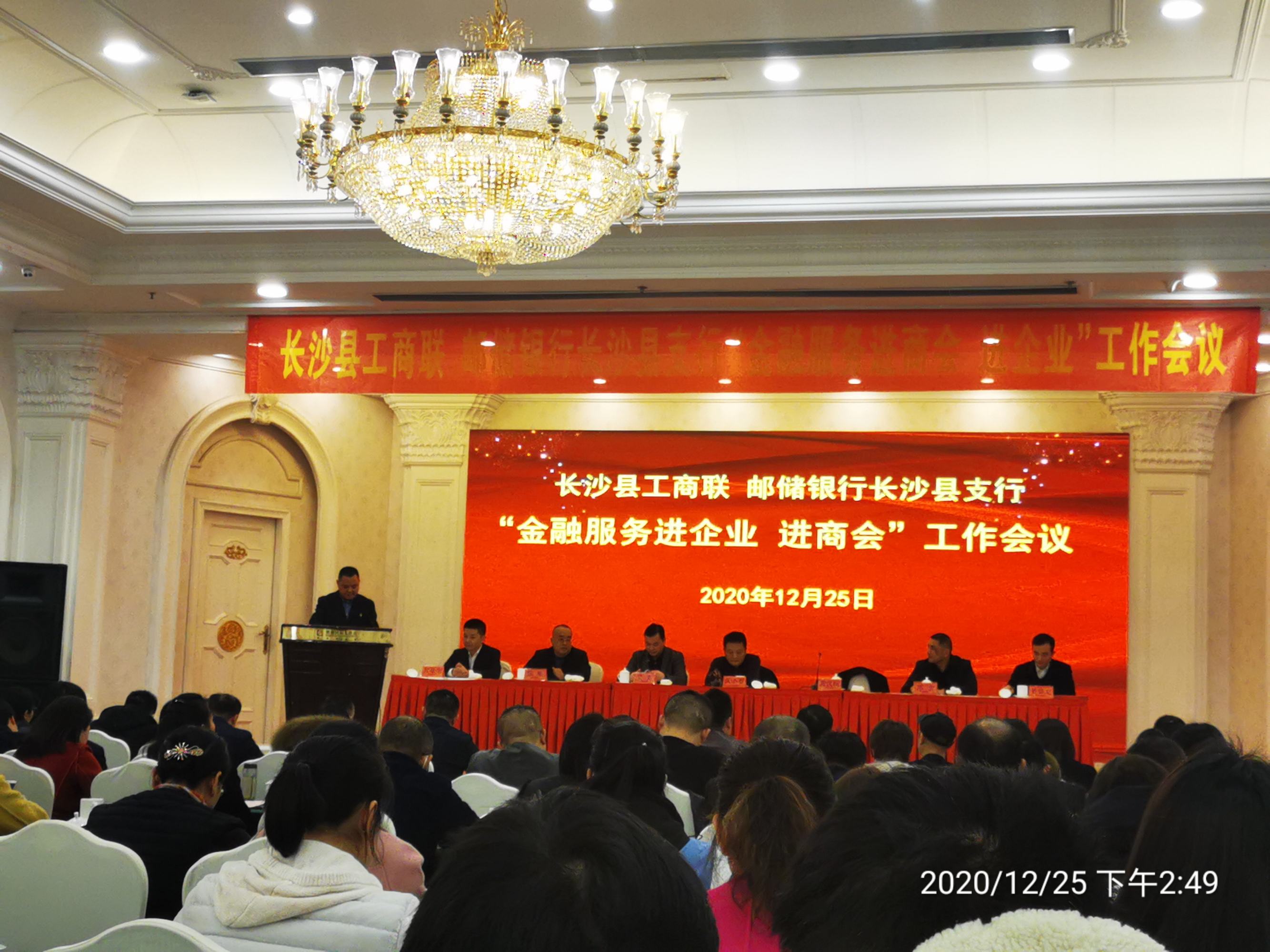 12月25日下午在明城国际大酒店白宫厅,长沙县物流与采购联合会执行会长任谷青,秘书长张正明,带领会员企业参加邮储银行长沙县支行召开“长沙县工商联‘金融服务进商会 进企业’银企对接会”